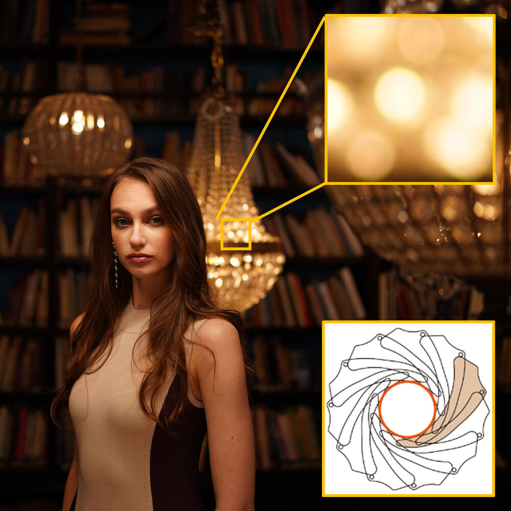 Заокруглена 11-пелюсткова діафрагма забезпечує приємну якість боке при використанні методів селективного фокусування.