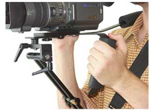 Камера кріпиться на легку і міцну конструкцію, що дозволяє регулювати установку камкордеру по довжині руки. Опорна рамка з м'яким покриттям зручно розташовується на плечі, причому конструкція упору дає можливість використовувати як праве, так і ліве плече. Підтримуючи стабілізуючу систему однією рукою за ручку плечового упору, оператор має можливість вільно виконувати всі операції з камерою іншою рукою.