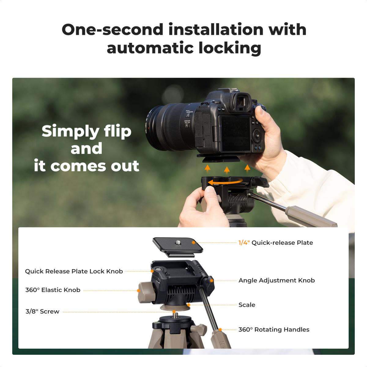 Легко складати та зберігати, зручно носити з собою, незалежно від того, чи то для фотографії на відкритому повітрі, для подорожей чи щоденного використання; Вага всього 1,3 кг, складений розмір становить лише 48 см, що забезпечує стабільну та надійну підтримку навіть на найскладнішій місцевості.