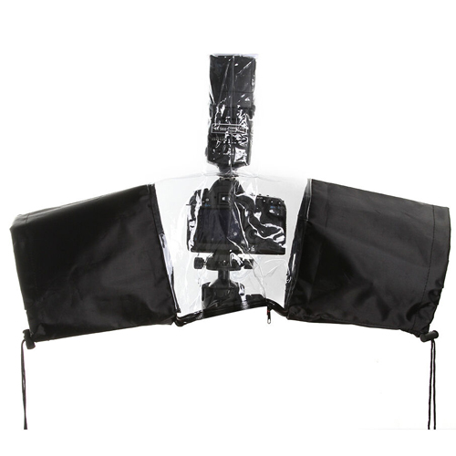 Гибкие рукава на затяжках, позволяют засунуть обе руки для управления фотоаппаратом. Прозрачный виниловый материал оставляет видимыми все основные органы управления.